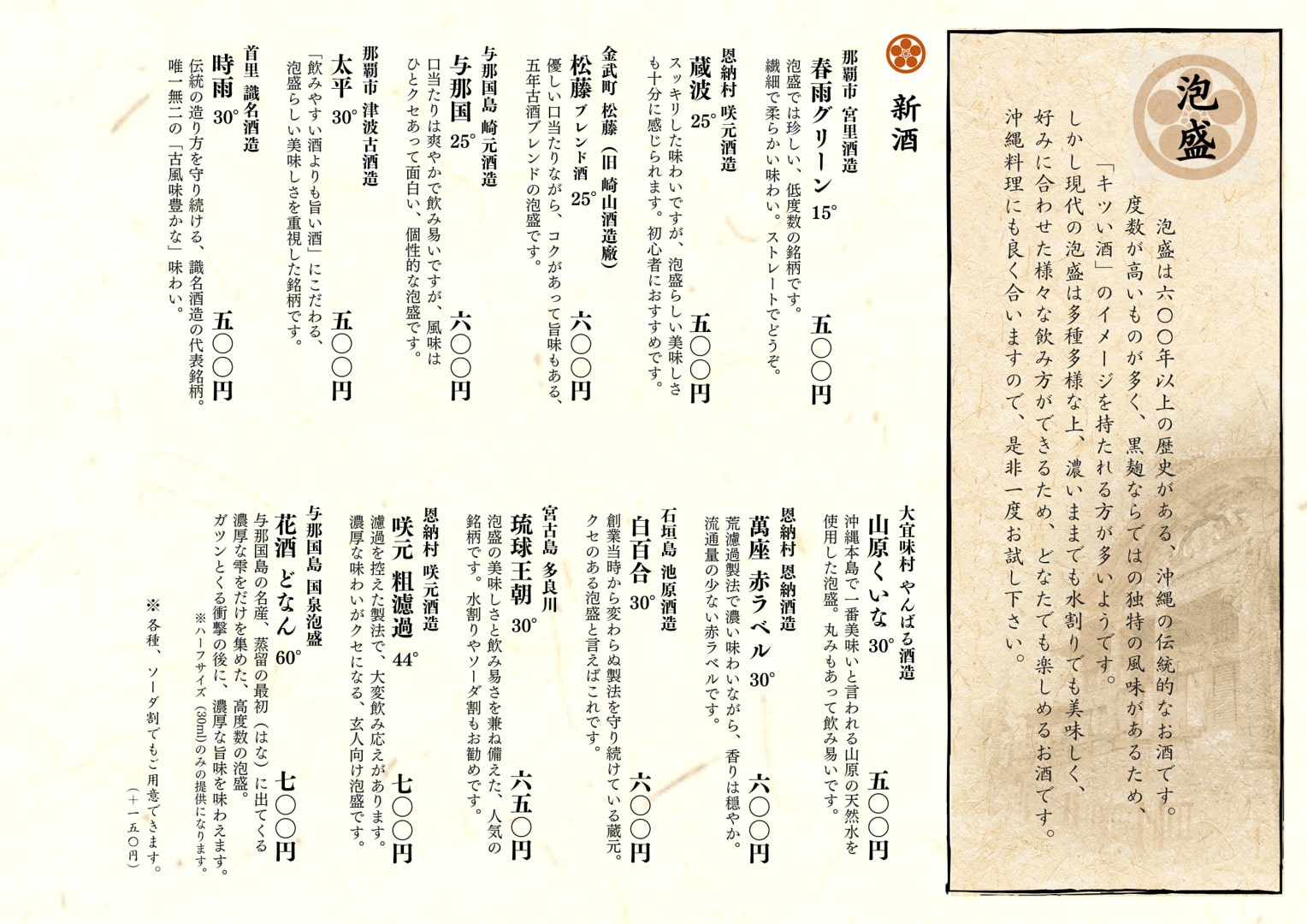 ドリンクメニューの御案内